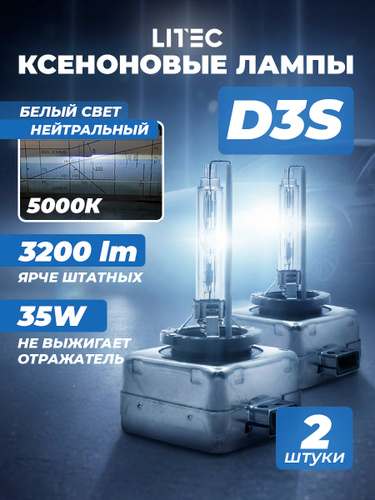 Ксеноновые лампы для автомобиля штатный ксенон D2S белый свет 5000К 35W LITEC (2 шт.)