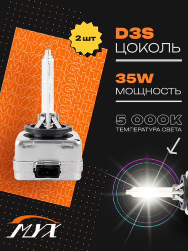 Ксеноновые лампы для автомобиля штатный ксенон MYX Light цоколь D3S, питание 12V, мощность 35W, температура света 5000K, пластиковый цоколь, комплект 2шт.