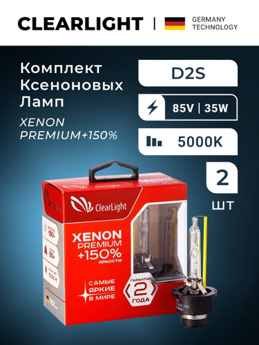 Ксеноновые лампы D2S Clearlight Xenon Premium+150% 5000K 2шт