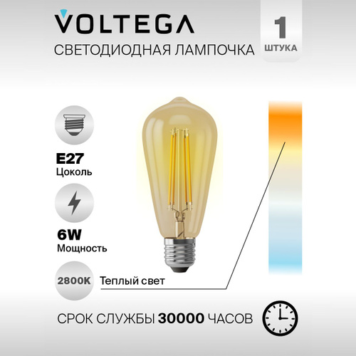 Светодиодная лампочка Е27 в стиле лофт форма груша 6W теплый свет Voltega Loft 2800К 1 шт.