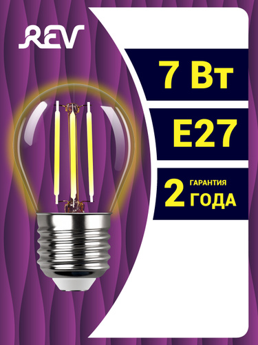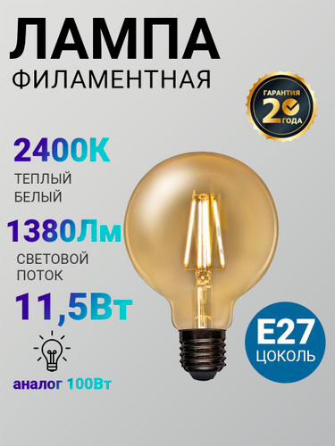 Лампочка светодиодная e27 7Вт филаментная теплый свет 2700K G95 аналог лампы 75Вт REV