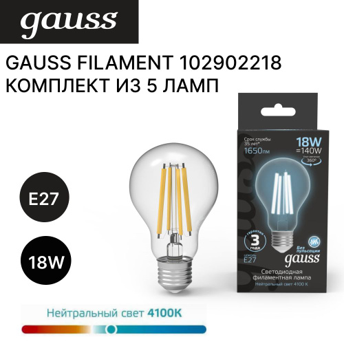 1шт. Gauss Лампа Filament А60 18W 1650lm 4100К Е27 LED 1.10.40, 102902218
