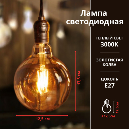 Лампа филаментная REXANT E27 11,5 Вт A95 Груша, золотистая колба, 2400К теплый свет, энергосберегающая