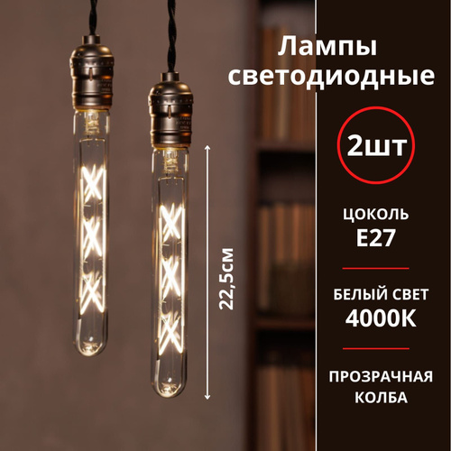 Лампочки светодиодные филаментные 2 шт, E27 9Вт T30 4000K, LED декоративные в стиле лофт, винтаж/ Лампа Эдисона