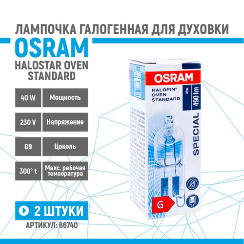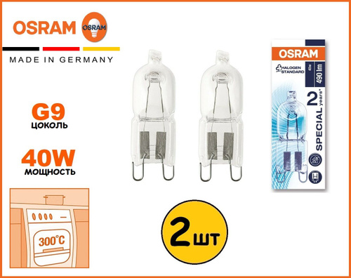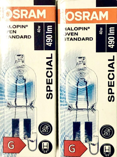 (2шт) Лампочка для духовки G9 40W термостойкая, OSRAM, 300гр. 66740, 230V