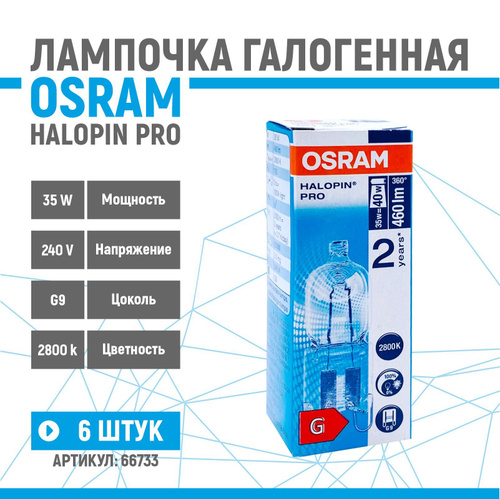 Лампочка галогенная OSRAM 35W(40W) G9 Halopin Pro 6 шт