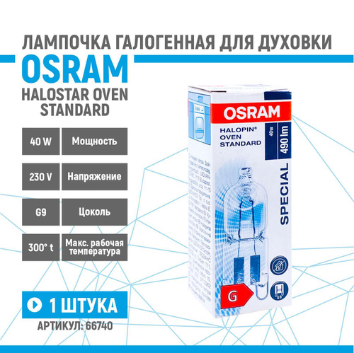Лампочка для духовки/ духового шкафа до 300 градусов галогенная 40W 230V G9 OSRAM