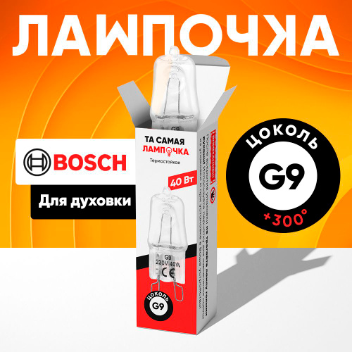 Лампа для духового шкафа совместимая с БОШ / та самая лампочка для духовки подходит для BOSCH G9 40w, 220v галогеновая