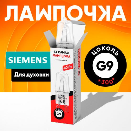 Лампа для духового шкафа Сименс / та самая лампочка для духовки Siemens G9 40w, 220v галогеновая