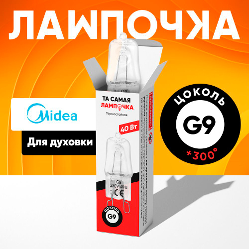 Лампа для духового шкафа МИДЕА / та самая лампочка для духовки Midea G9 40w, 220v галогеновая