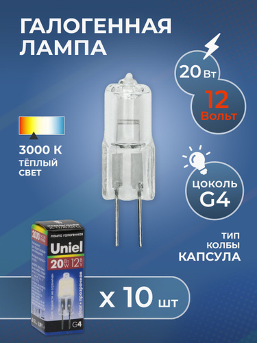 Комплект из 10 галогенных лампочек, Uniel JC-12/20/G4