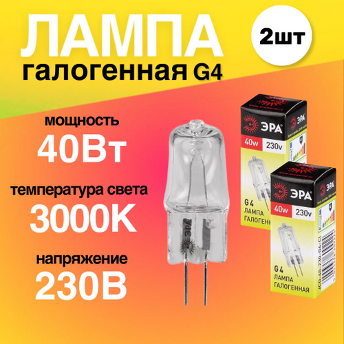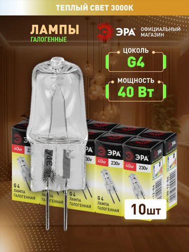 Лампочка галогенная ЭРА G4 40 Вт капсула теплый белый свет набор 10 штук
