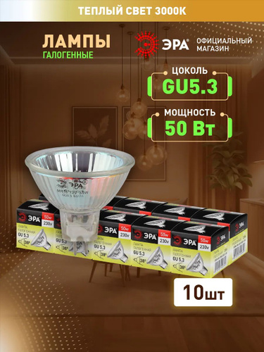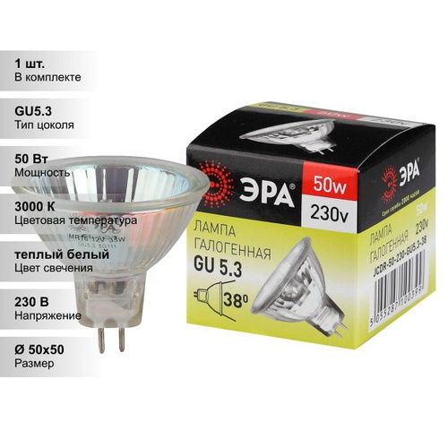 ЭРА Лампочка, Цоколь:GU5.3, 50 Вт, Галогенная, 1 шт.
