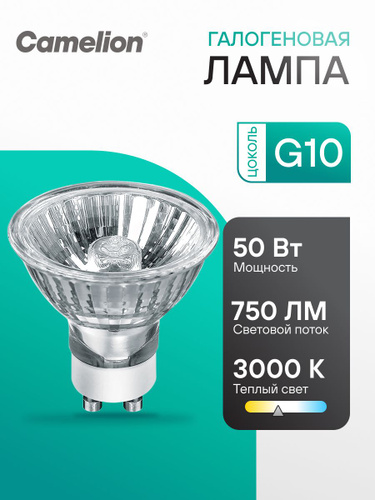 Галогенная лампочка с защитным стеклом 50W GX5.3 Camelion, 50mm, 1 шт