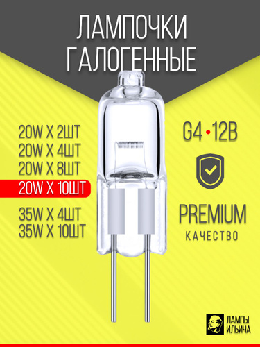 Лампочка, Цоколь:G4, 20.00 Вт, Галогенная, 10 шт.