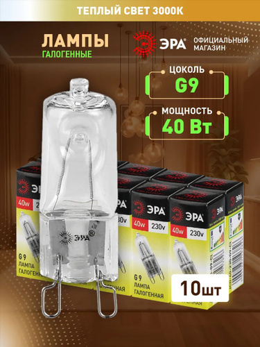 Лампочка галогенная ЭРА G9 40 Вт JCD капсула 3000К теплый белый свет набор 10 штук