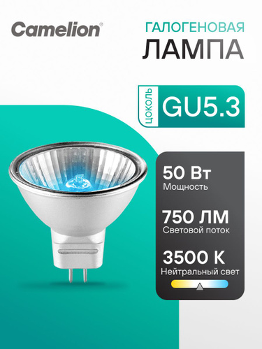 Галогенная лампочка Camelion 50W GU5.3, дневной белый свет, 1 шт