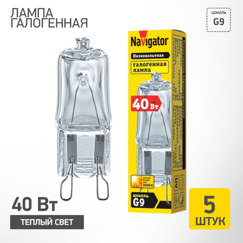 Лампа галогенная 40Вт капсульная G9 3000К 230В clear 2000h JCD9 Navigator 94215 5 штук