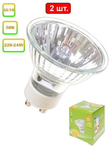 Лампочка, Цоколь:GU10, 50 Вт, Галогенная, 2 шт.