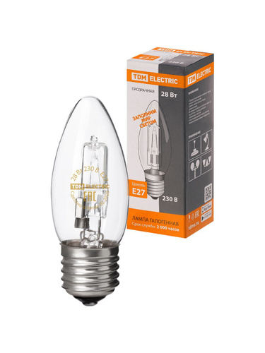 Лампа галогенная "Свеча" прозрачная 28 Вт-230 В-Е27 TDM