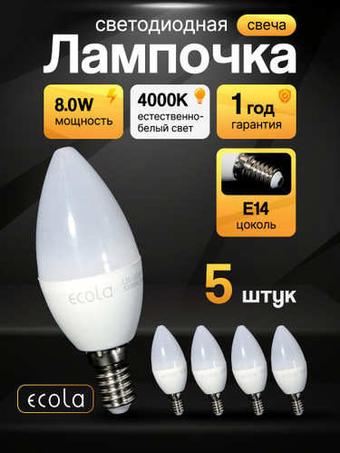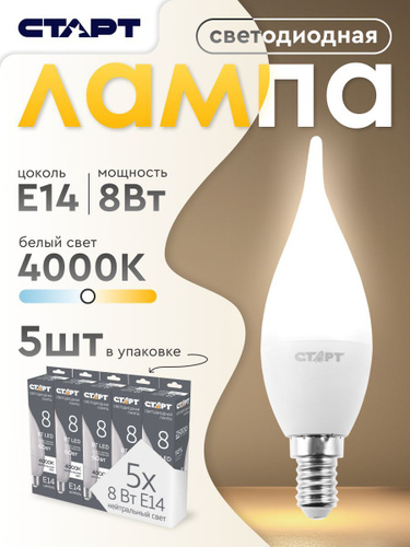 Лампочка светодиодная Е14 "Свеча на ветру" 8Вт нейтральный свет 5 штук
