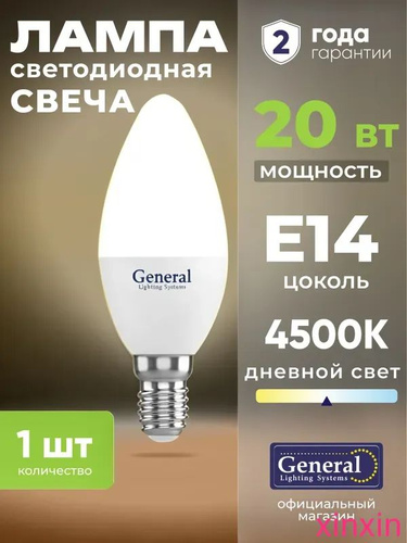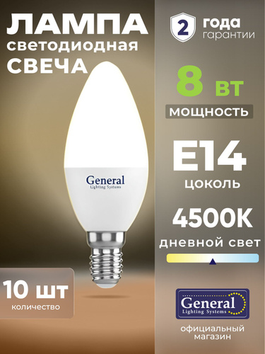 Лампочка светодиодная E14 20 Вт General, нейтральный белый свет 4500K матовая свеча, 1 штука