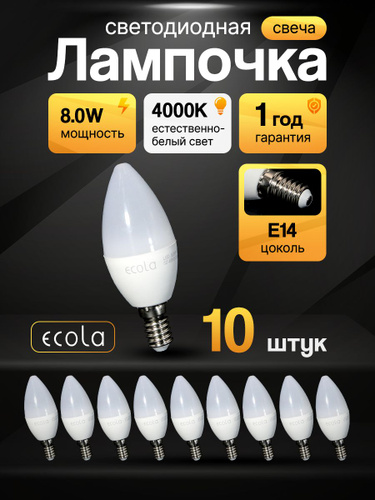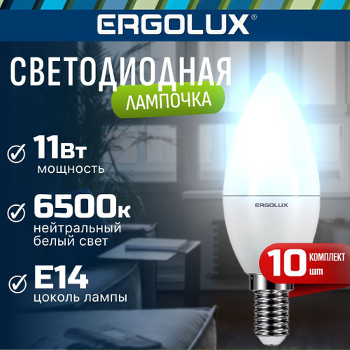 Набор из 10 светодиодных лампочек E14 6500K / Ergolux / Свеча LED, 11Вт