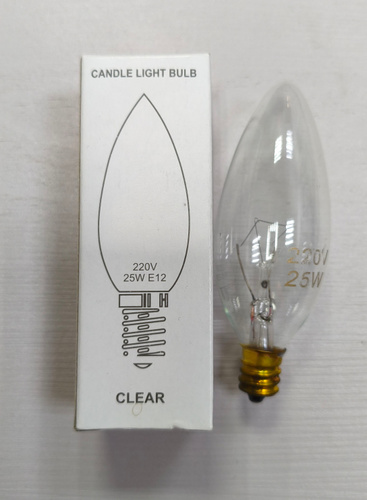 Лампа свеча для люстры импортного стандарта с маленьким цоколем Е12 220V 25W 10шт