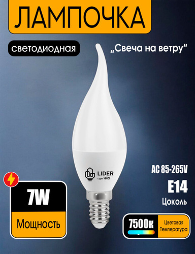 Лампочка светодиодная е14, лампочка свеча