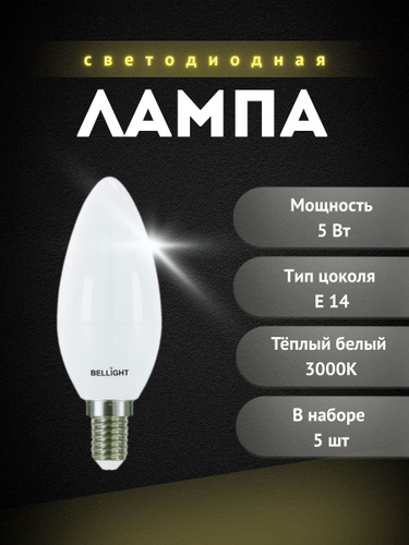 Лампа LED 5Вт 3000K 470Лм E14 Свеча 88297881 BELLIGHT