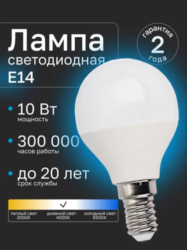 Светодиодная лампочка Е14 10 ВТ дневной свет