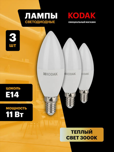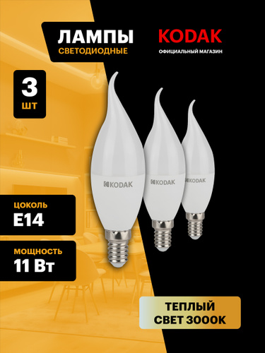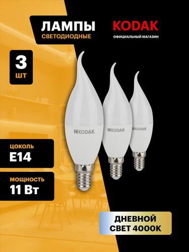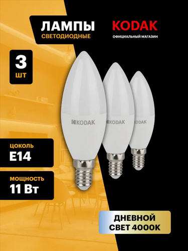 Лампочка светодиодная KODAK LED Е14 11 Вт B35 свеча 4000К нейтральный белый свет набор 3 штуки