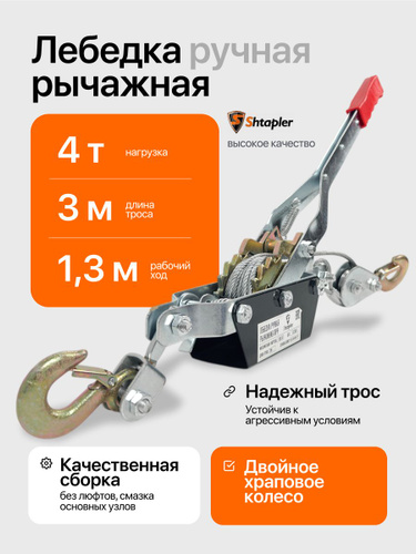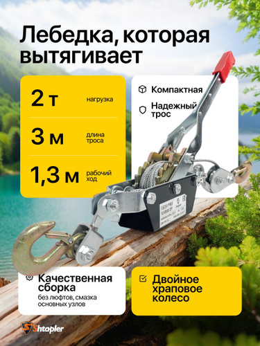 Лебедка ручная 2т 3м автомобильная рычажная тросовая храповичная ЛРР