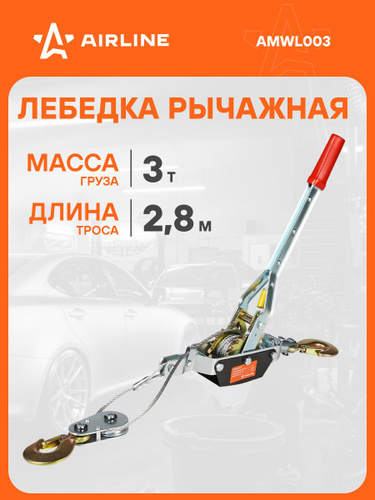 Лебедка ручная рычажная 3 тонны, 2,8 метров тросовая с двойным храповым механизмом / лебедка автомобильная AIRLINE AMWL003