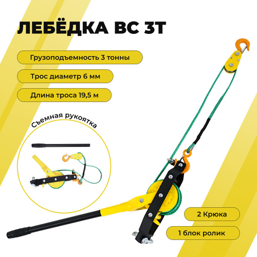 Лебедка ручная рычажная со складным рычагом ВС 3Т(кевларовый трос 19.5 м)
