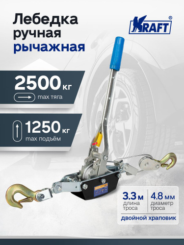 Лебедка ручная рычажная KRAFT с двойным храповым механизмом 2,5 тонны KT 705011