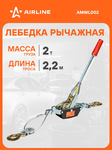 Лебедка ручная рычажная 2 тонны, 2,2 метра тросовая с двойным храповым механизмом / лебедка автомобильная AIRLINE AMWL002