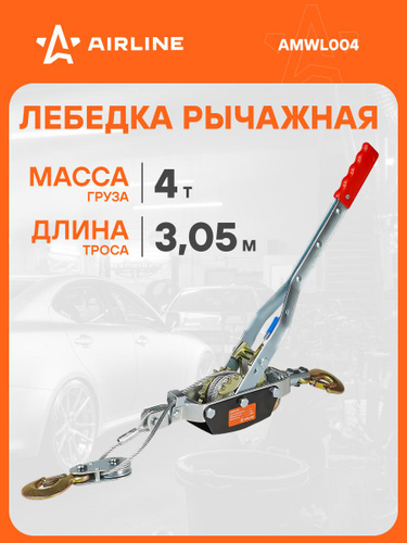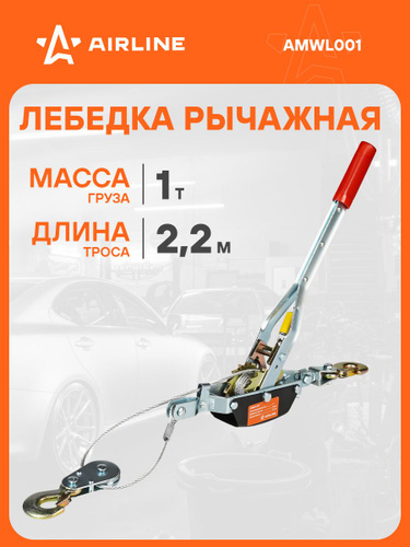 Лебедка ручная рычажная 1 тонна, 2,2 метра тросовая с двойным храповым механизмом / лебедка автомобильная AIRLINE AMWL001