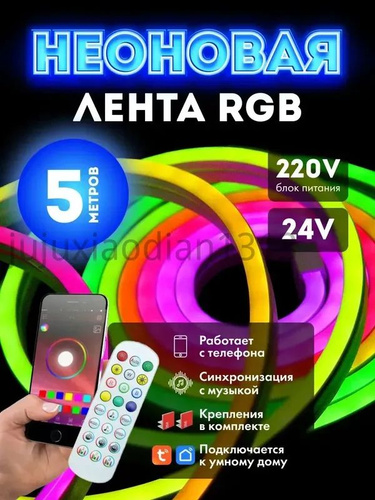 Умная неоновая светодиодная лента RGB 5 метров 24V гибкий неон с WIFI контроллером, Smart Life