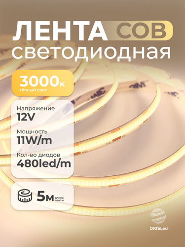 DIGSLED Светодиодная лента 11 Вт, IP33, Теплый белый, 1 шт