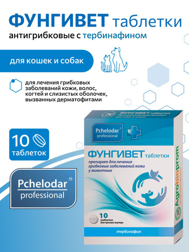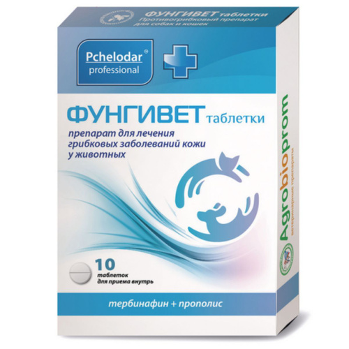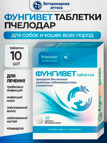Фунгивет таблетки для лечения грибковых инфекций кожи у собак и кошек (Pchelodar),10таб