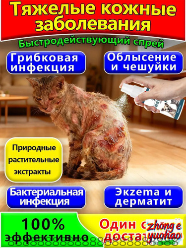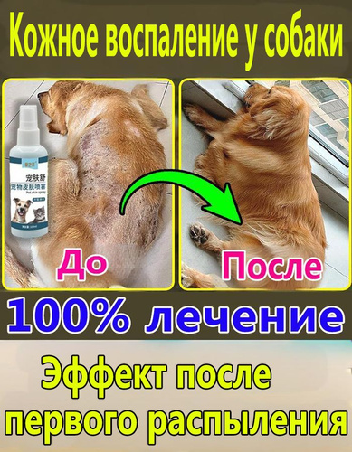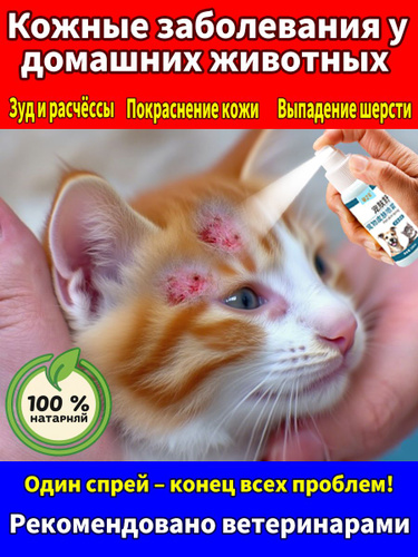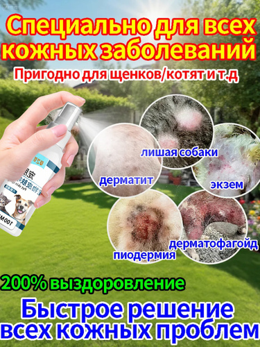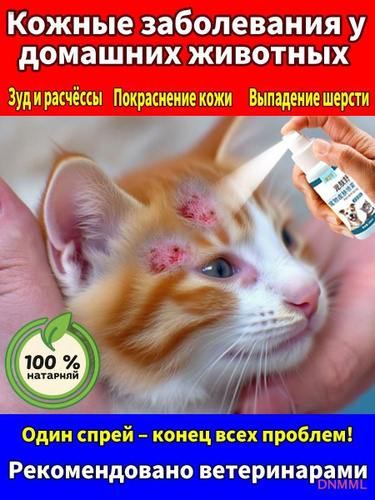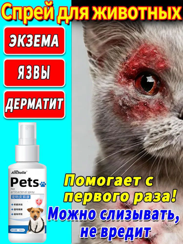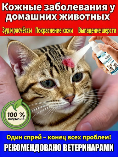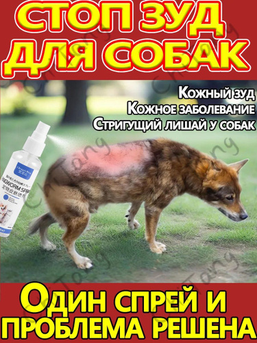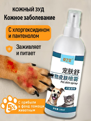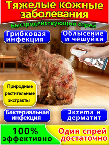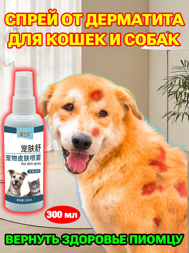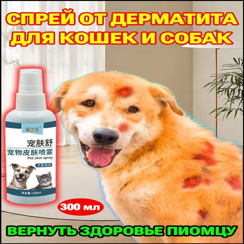 Спрей для собак и кошек от кожных заболеваний против грибка, лишая, зуда и блошиного дерматита. Заживляющий, антибактериальный