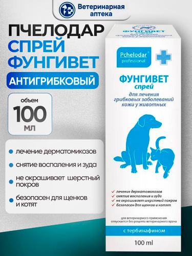 Пчелодар Фунгивет спрей для лечения грибковых заболеваний кожи собак и кошек, 100 мл