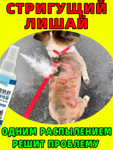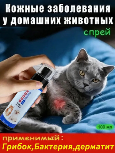 Спрей от стригущего лишая для кошек и собак , 100 мл, для ухода за кожей домашних животных, наружное применение