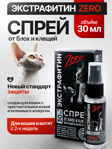 Спрей для чувствительных пород кошек и котят от блох и клещей "ЭКСТРАФИТИН" ZERO, 30 мл.