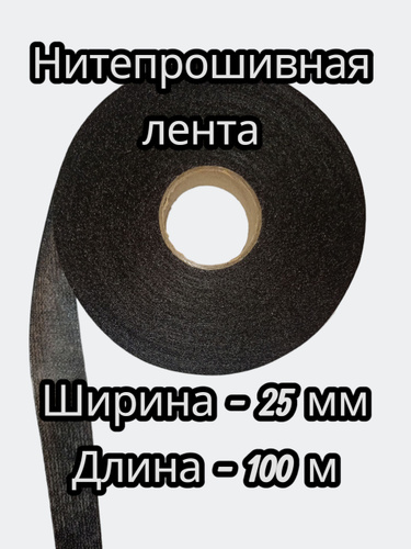Лента нитепрошивная клеевая по долевой черный 25 мм 100 м