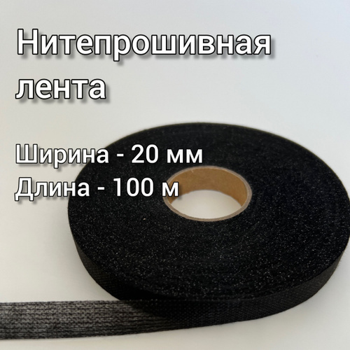 Лента нитепрошивная клеевая по долевой черный 20 мм 100 м