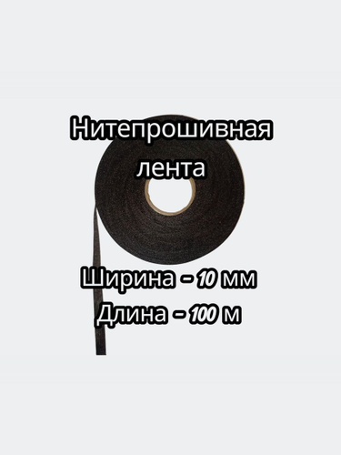 Лента нитепрошивная клеевая по долевой черный 10 мм 100 м