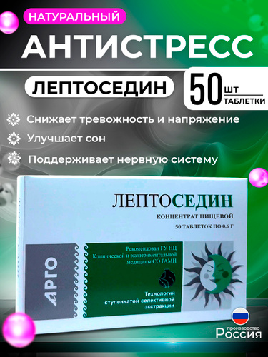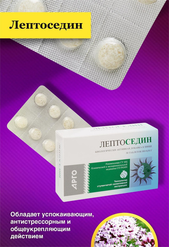 "ЛЕПТОСЕДИН" успокаивающее, антистрессовое и общеукрепляющее, 50 таб от Апифарм (РФ), Арго