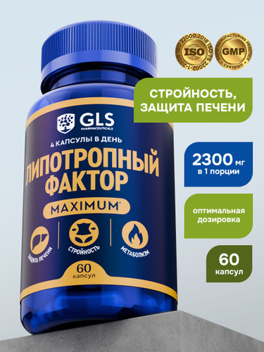 Липотропный фактор MAXIMUM GLS, жиросжигатель, бад / витамины для стройности, метаболизма, защита печени, 60 капсул